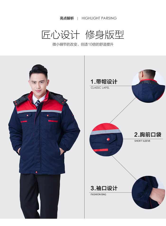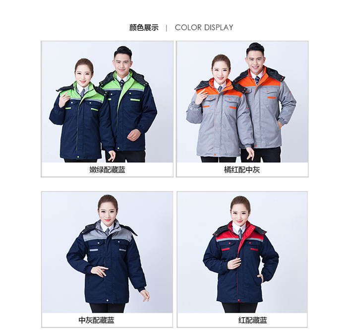 時尚拼色棉服工作服定做,棉襖工作服定做,冬季防寒工作服定做