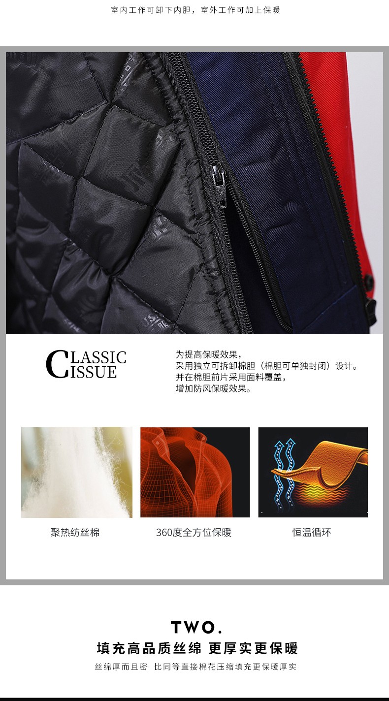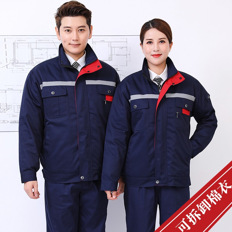 其次,冬季棉衣工作服在設計上也向時尚界看齊,不再像以前那樣一板一眼,更多的融入了當下的流行元素,比如拼色、撞色,可拆卸的帽子和中長款的版型設計都是新的突破。袖口、領子等細節地方也是有過用心設計的,兼顧了使用和美觀。